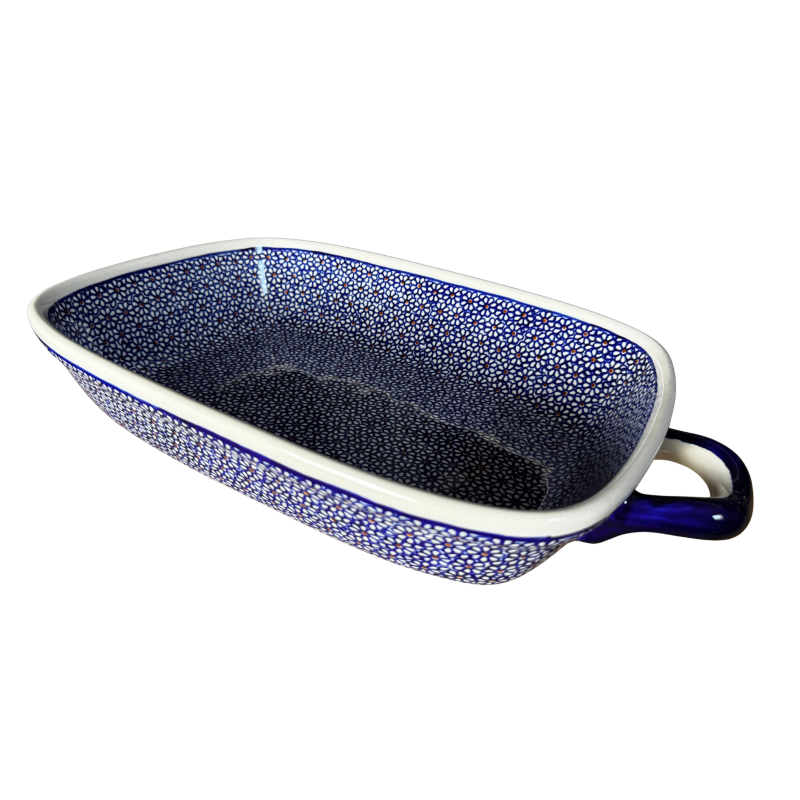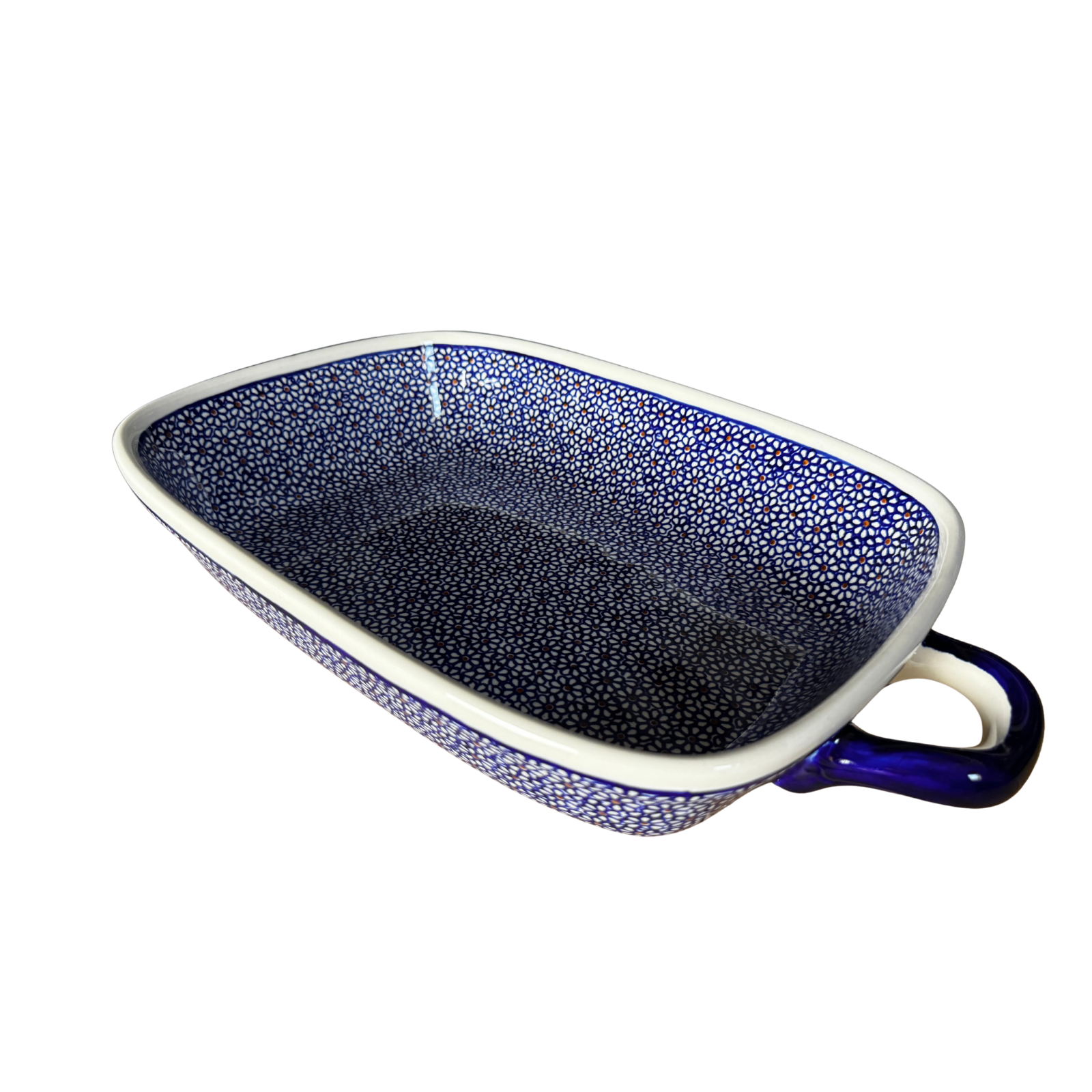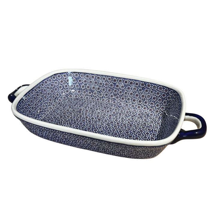 Tava de copt, din ceramica smaltuita, lucrata si pictata manual. Ceramica ecologica, produs non-toxic, fara cadmiu si plumb. O alegere estetica si functionala, in care gatitul este sanatos, usor si rapid. O incantare pentru ochi si papile gustative!