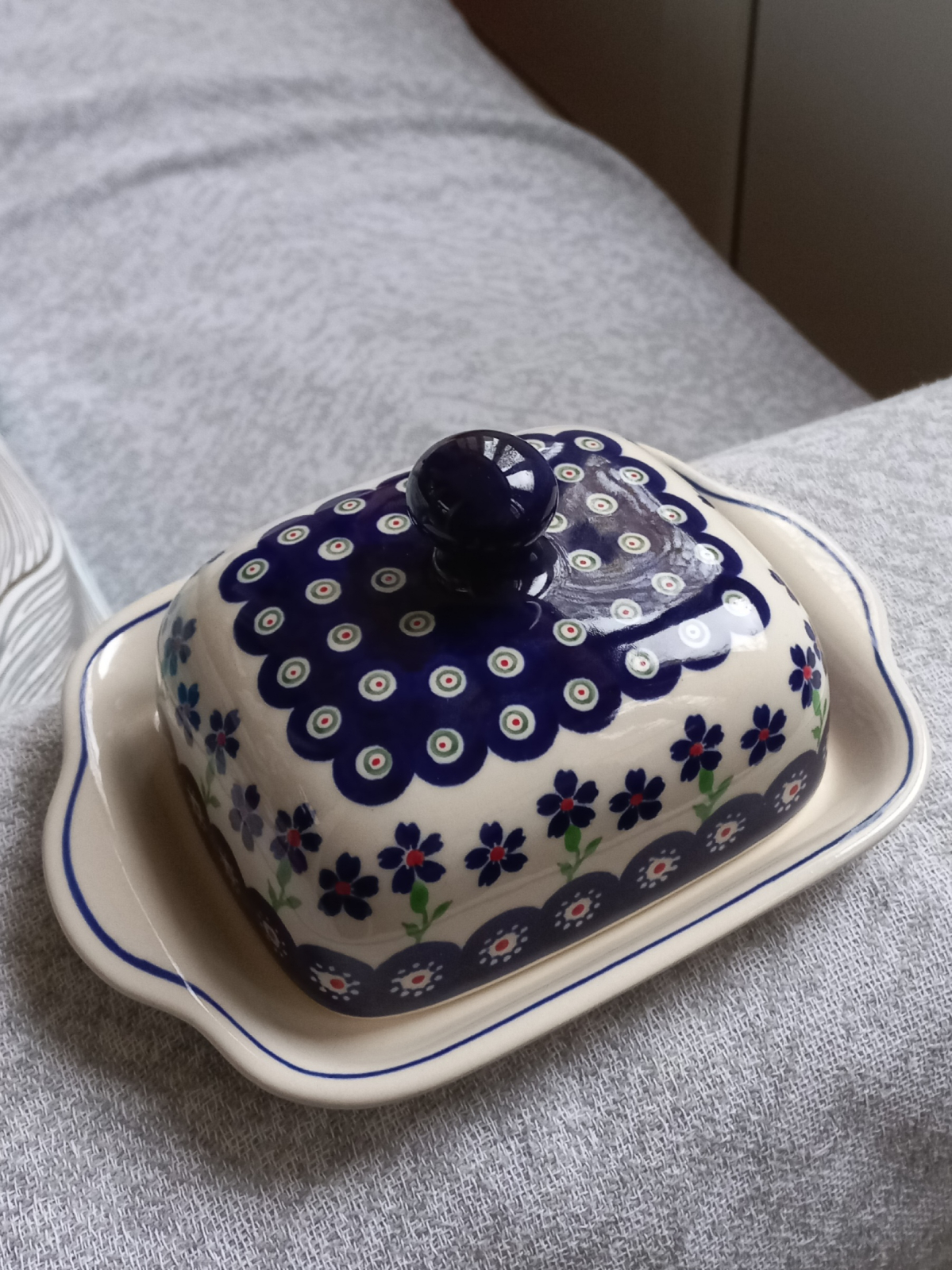 Accesorizeaza-ti bucataria cu aceasta untiera dreptunghiulara, lucrata si pictata manual in modele traditionale. O adevarata opera de arta iesita din mana artizanilor polonezi. Este centrul atentiei la micul dejun, pastrand untul proaspat la temperatura camerei pentru a fi usor tartinabil.
