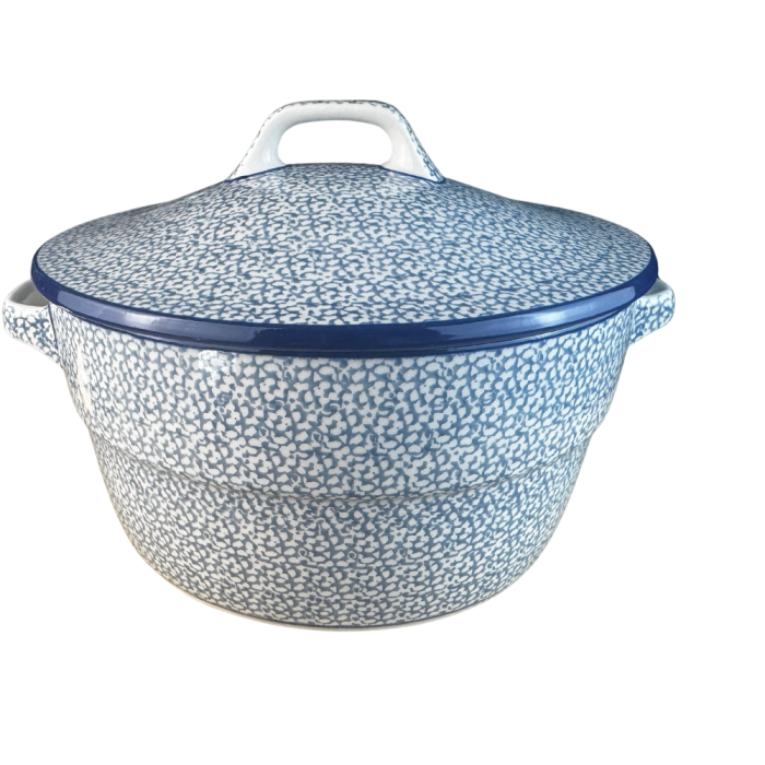 Vas rotuns cu capac si manare, din ceramica smaltuita, lucrat si pictat manual. Ceramica ecologica, fara cadmiu si plumb. O alegere estetica si functionala, in care gatitul este sanatos, usor si rapid. O incantare pentru ochi si papile gustative!